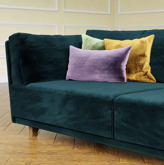 Mit einer Sitzhöhe von 45 cm sitzt man bei einem Sessel oder Sofa mit Komfortmaßen so hoch wie auf einem Esszimmerstuhl. Die Sitztiefe ist mit 55 cm bewusst kurz gewählt, sodass das Rückenkissen (45 cm) vom unteren Lendenbereich bis zu den Schultern optimal unterstützen kann.