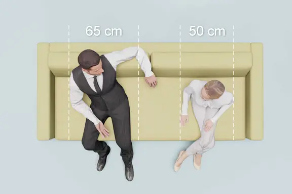 Pro Personen sollten zwischen 50 cm – 65 cm Platz vorhanden sein, abhängig von Statur und Körpergröße. 50 cm sind dabei schon sehr knapp bemessen und eignen sich eher für Kinder oder besonders zierliche Menschen. Ein bequemeres Sitzgefühl erhält man, wenn pro Person zwischen 60 cm – 70 cm an Sitzfläche einberechnet werden. Wer es besonders großzügig mag, der kann sogar bis zu 75 cm oder mehr pro Person einkalkulieren! Für die Berechnung des Platzbedarfs sollte man auch das sehr individuelle Maß der Komfortzone berücksichtigen - und ein paar Zentimeter extra einkalkulieren. Abhängig von diesen Werten bestimmt sich auch die Gesamtlänge des Sitzmöbels.